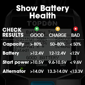 Note: For 12V batteries (100–2000 CCA). Minimum detectable voltage: 4V.